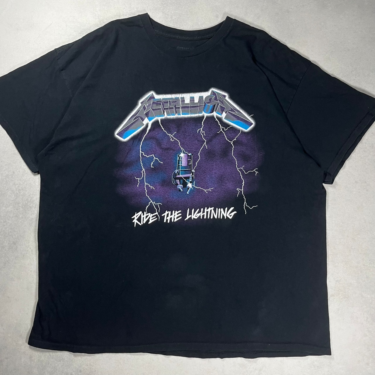 フロントにメタリカが1984年に発表したセカンドアルバムのライド・ザ・ライトニングがプリントされており、雷のデザインがたまらない一枚!