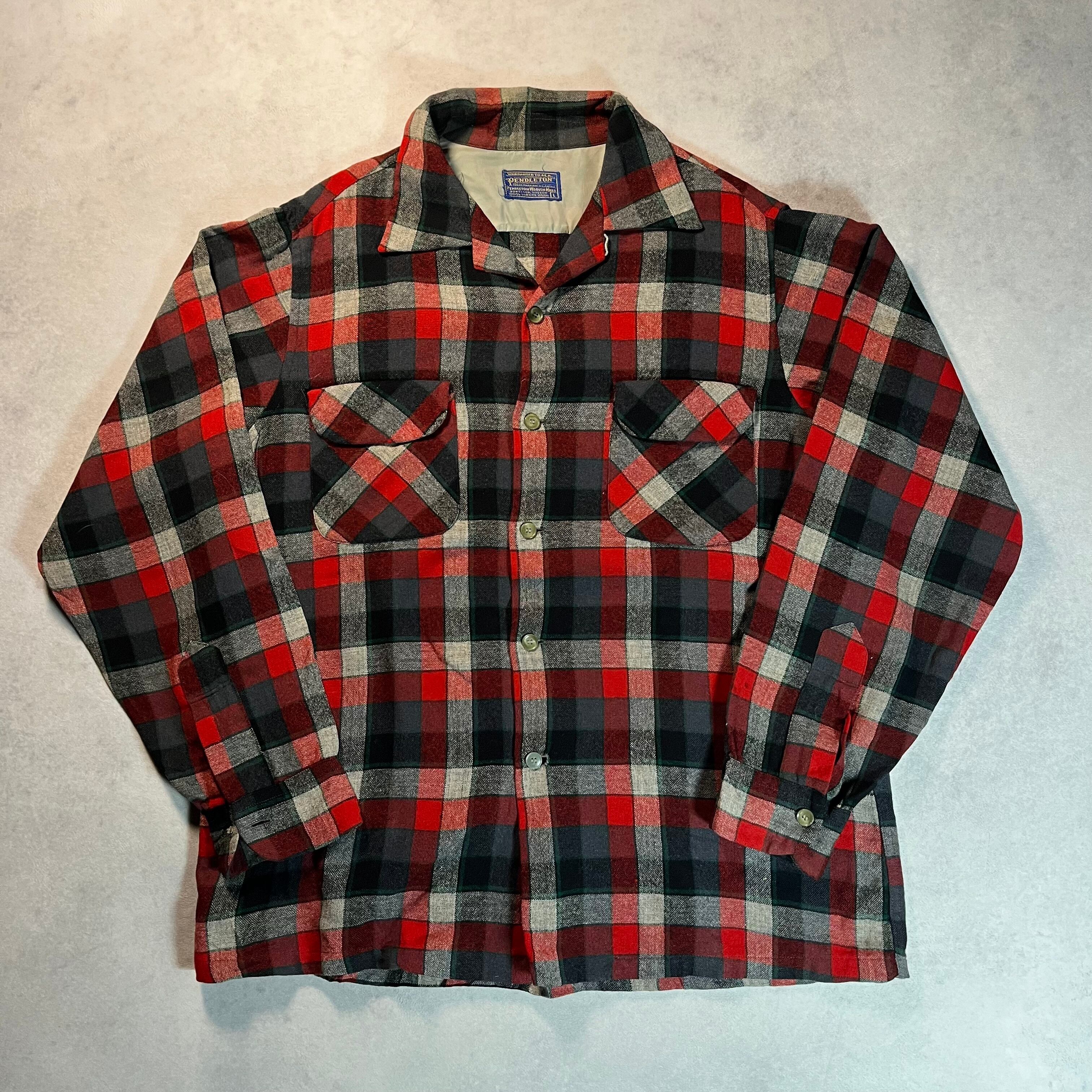 Lサイズ 50’s PENDLETON wool board shirt open color shirt ボードシャツ オープンカラー ボックスシルエット