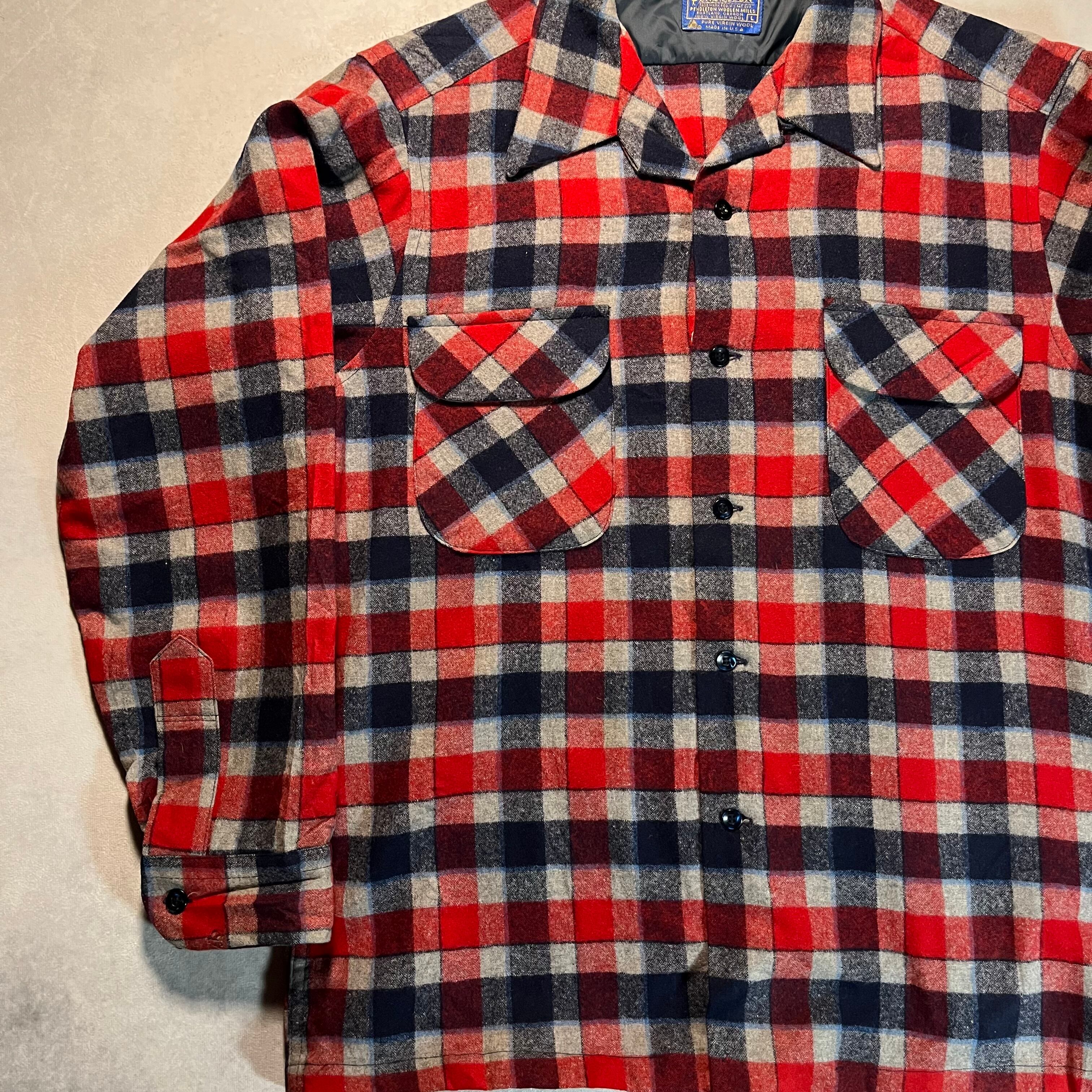 Lサイズ 70’s PENDLETON wool board shirt open color shirt ボードシャツ オープンカラー ボックスシルエット 開襟 70s